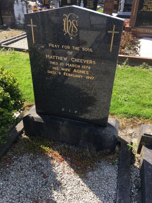 Pray for the soul of Matthew Cheevers, died 10 March 1978, his wife Agnes, died 9 Feb 1997.