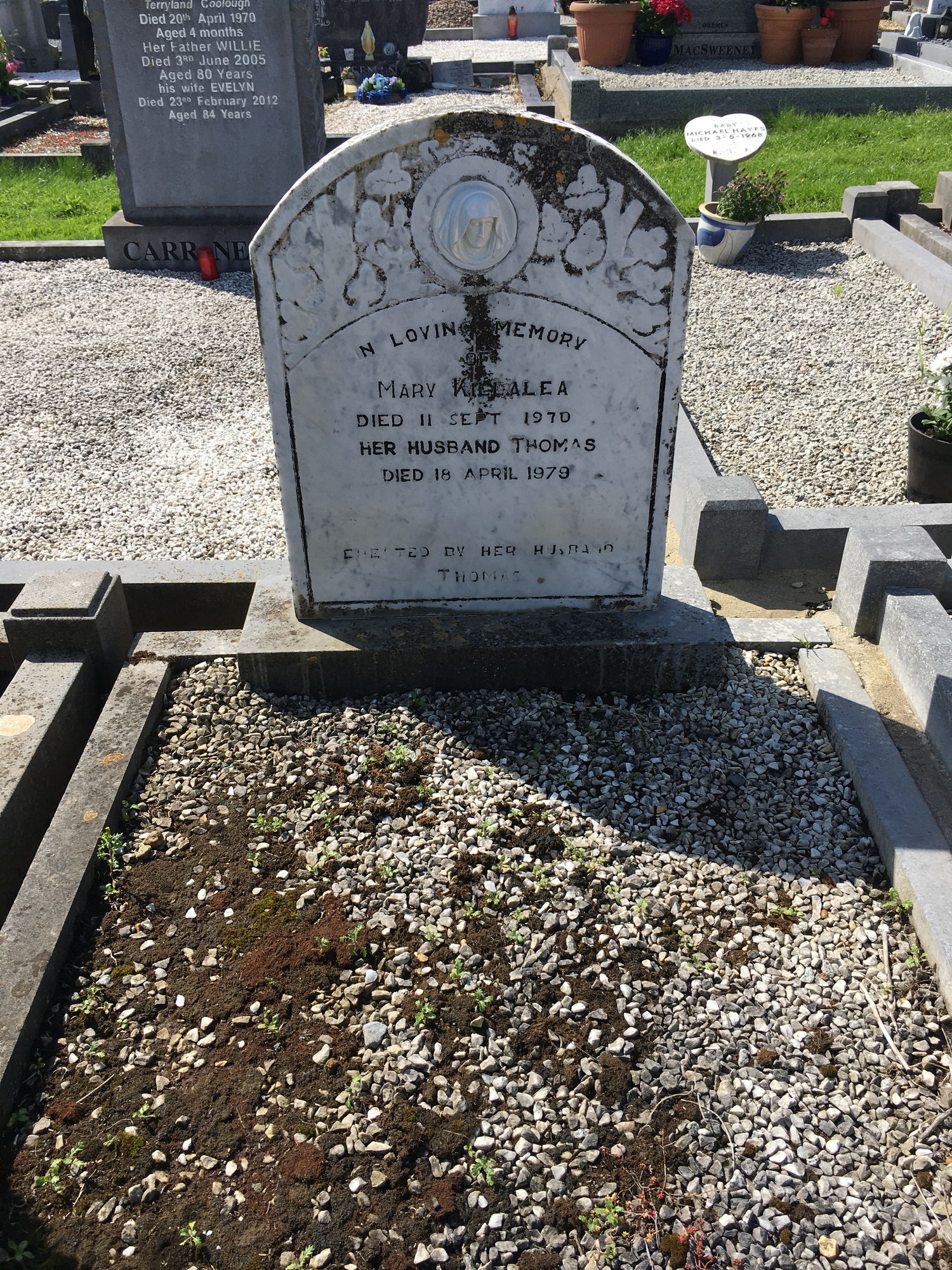 In loving memory of, Mary Killalea, died 11 Sept 1970, her husband Thomas, died 18 April 1979.