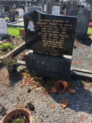 Cheristed memories of, Margaret Rooney nee Murphy, 64 Dalysfort Rd Salthill, born 20 July 1917, died 13 March 1999, her son Michael Paschal, born 2 April 1961, died 3 Oct 1963, her husband Patrick, born 28 Nov 1923, died 20 March 2005.