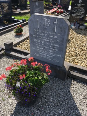 In ever loving memory of, Charles Rabbitt, died 1 June 1978 aged 64 years, his beloved wife, Maureen nee Bowles, 13.8.1917 - 15.3.2005, their much loved grandson, Shane Rabbitt, died 1 Dec 2009 aged 26 years, their beloved daughter Francis Brady, died 9 July 2015 aged 55 years.