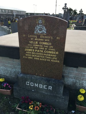In loving memory of my beloved wife, Nellie Comber, who departed this life, 21 May 1997 aged 81 years. James Patrick Comber her beloved husband who departed this life, 21 Dec 2000 aged 83 years.