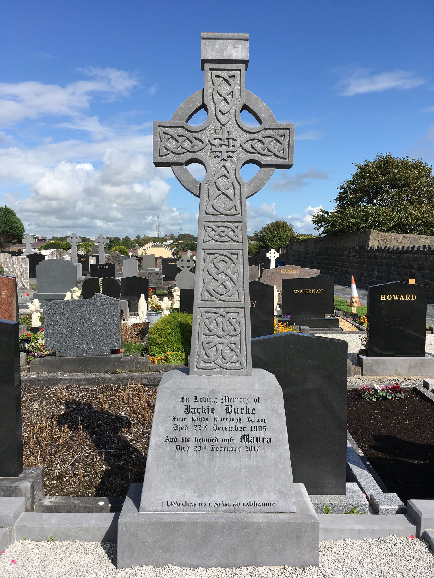 In loving memory of, James Burke, Four Winds Murrough Galway, died 22 Dec 1995, and his beloved wife Maura, died 23 Feb 2017.