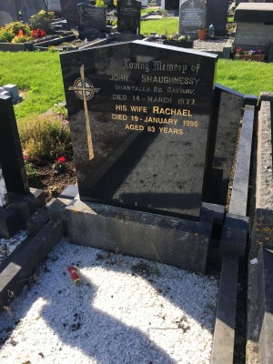 In loving memory of John Shaughnessy, Shantalla Road Galway, died 14 March 1977, his wife Rachael, died 19 Jan 1996, aged 83 years.