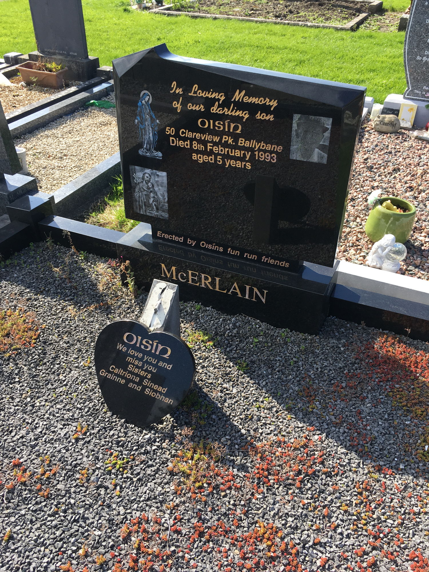 In loving memory of our darling son, Oisin, 50 Clareview Park Ballybane, died 8 Feb 1993, aged 5 years.