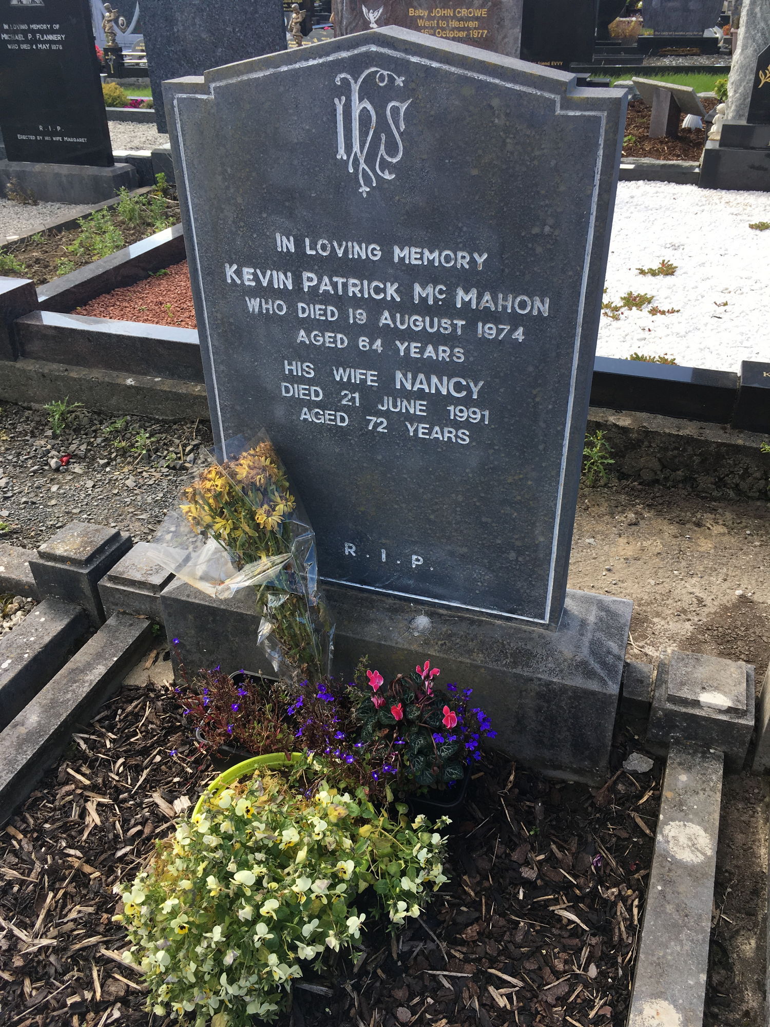 In loving memory of, Kevin Patrick McMahon, who died 19 Aug 1974, aged 64 years, his wife Nancy, died 21 June 1991, aged 72 years.