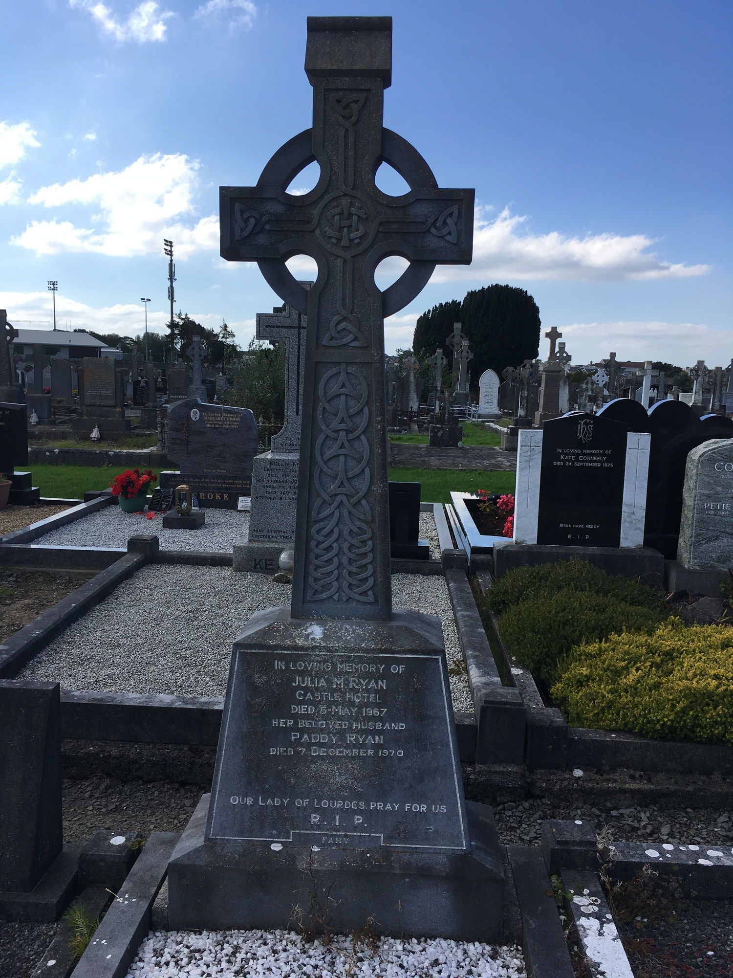 In loving memory of, Julia M Ryan, Castle Hotel, died 5 May 1967, her beloved husband, Paddy Ryan, died 7 Dec1970