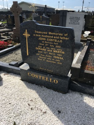 Treasured memories of a dear husband and father, John Costello, 35 Renmore Park, died 3 July 2002, and of his twin sons, Gerard and Martin, died 15 March 1965, and their mother Teresa, beloved wife of John, died 3 Sept 2010.