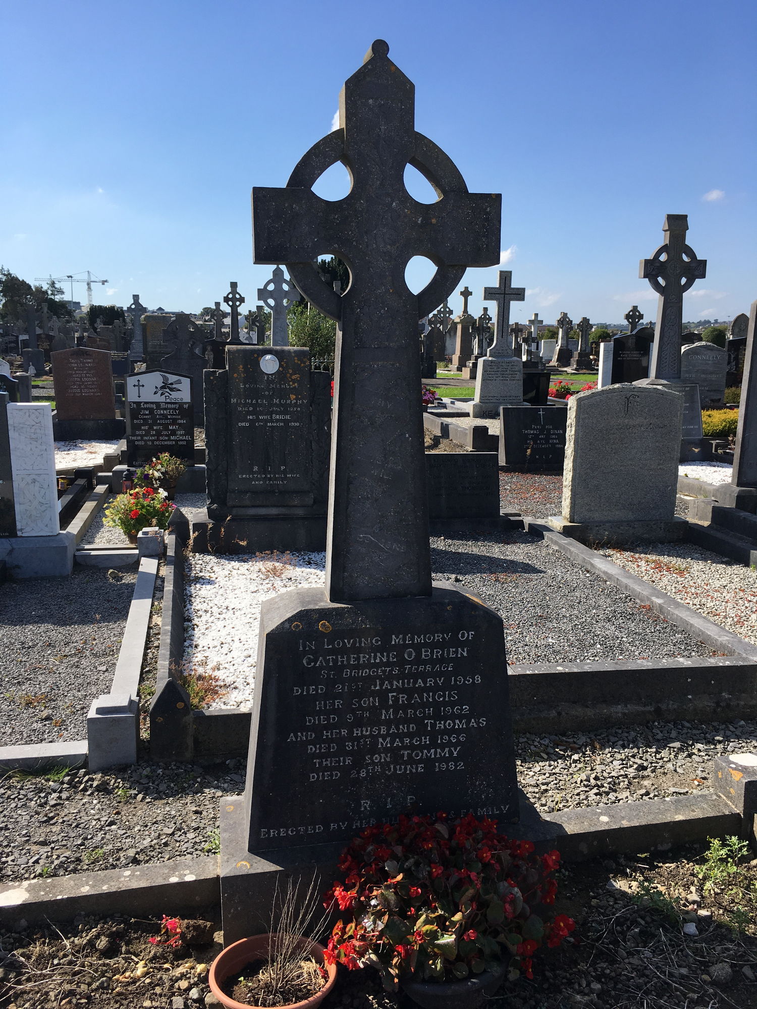 In loving memory of, Catherine O'Brien, St Bridget Tce, died 21 Jan 1958, her son Francis, died 9 March 1962, and her husband Thomas, died 31 March 1966, their son Tommy, died 28 June 1982.