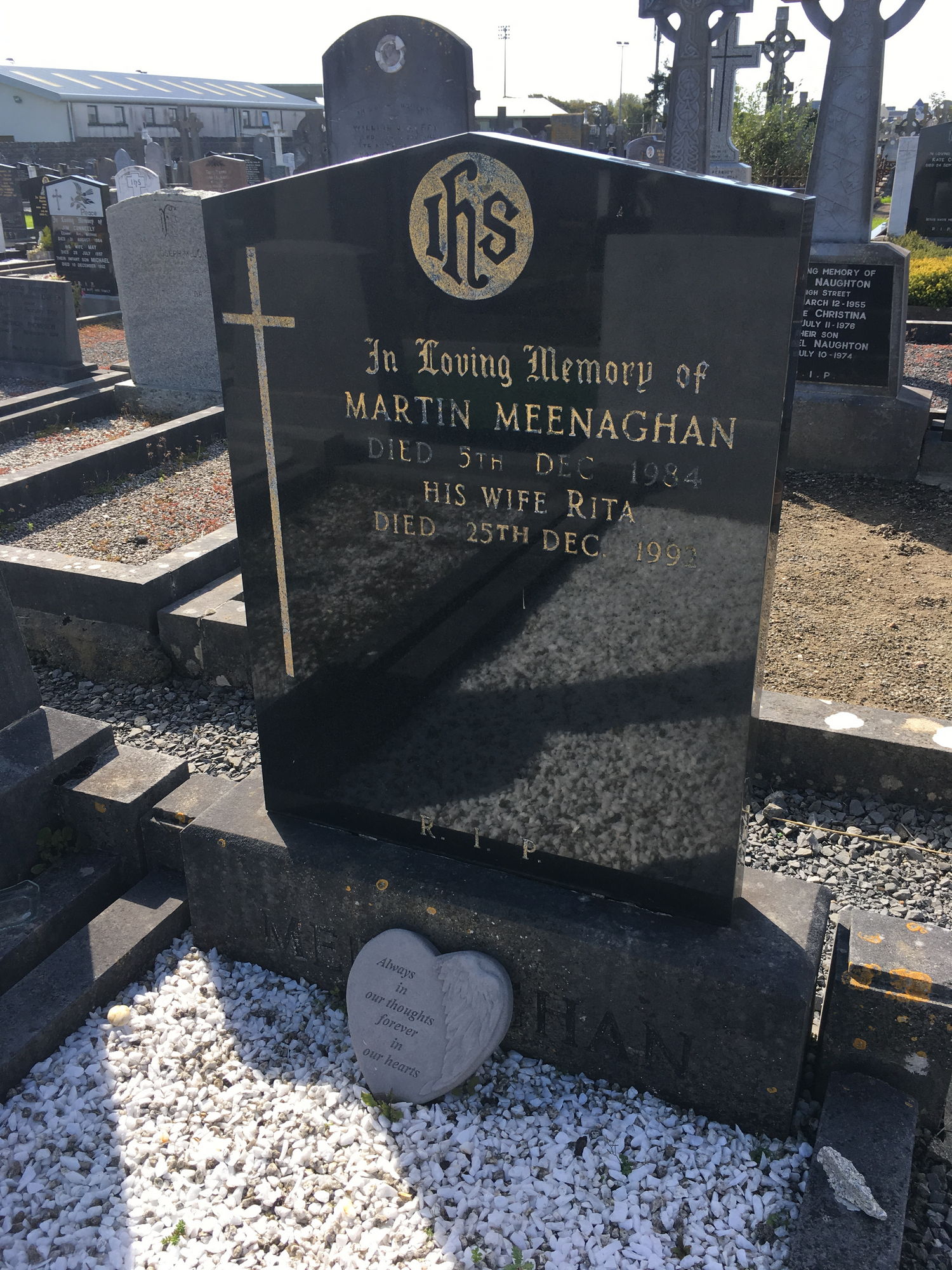In loving memory of, Martin Meenaghan, died 5 Dec 1984, his wife Rita, died 25 Dec 1992.