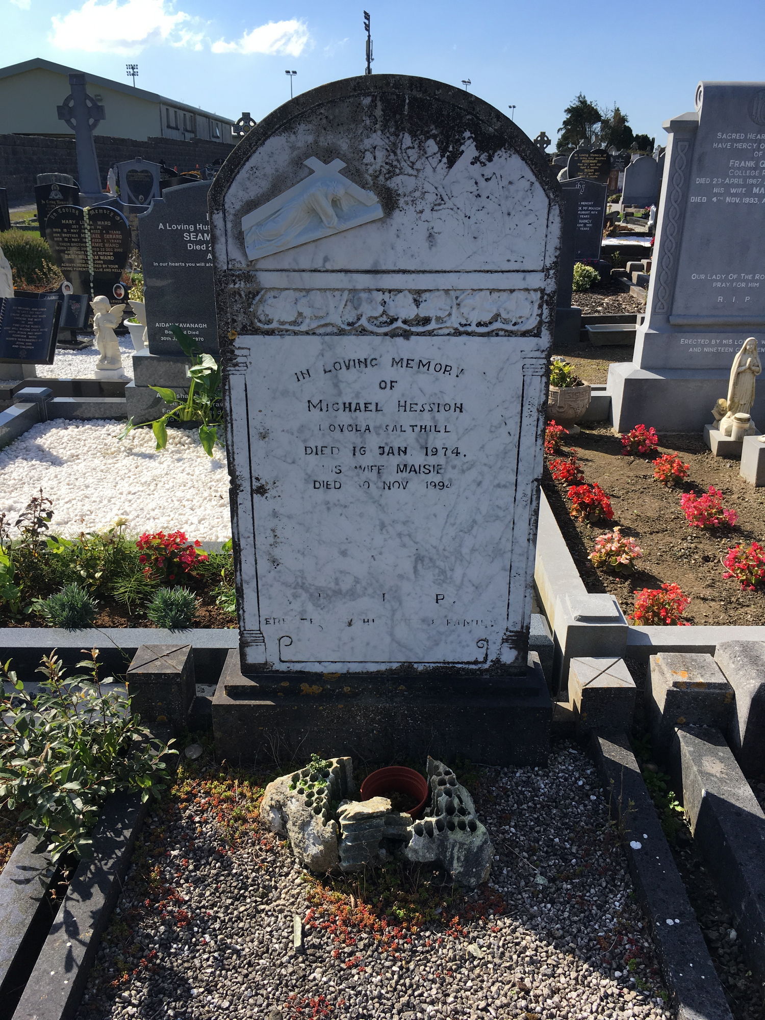 In loving memory of, Michael Hession, Loyola Salthill, died 16 Jan 1974, his wife Maisie, died 30 Nov 1994.