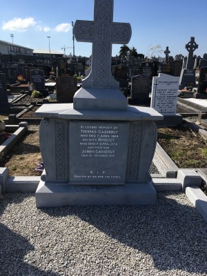 In loving memory of, Thomas Casserly, who died 7 April 1968, his wife Bridget, who died 7 April 1974, and their son, James Casserly, died 10 Oct 2016.