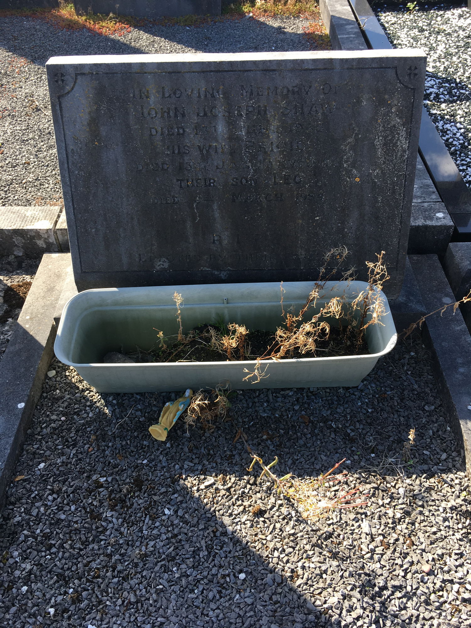 In loving memory of, John Joseph Shaw, died 13 June 1953, his wife Brigid, died 13 Jan 19??, their son Leo, died March 1994.