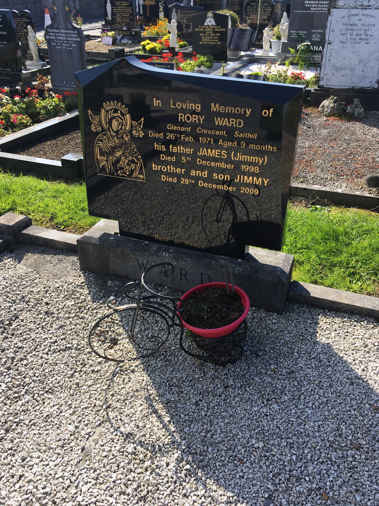 In loving memory of, Rory Ward, Glenard Crescent Salthill, died 26 Feb 1971, aged 9 months, his father James, died 5 Dec 1998, brother and son Jimmy, died 29 Dec 2009.
