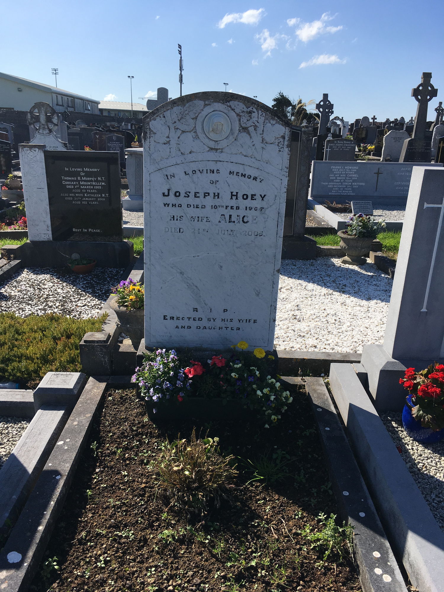 In loving memory of, Joseph Hoey, died 10 Feb 1967, his wife Alice, died 21 July 2005.