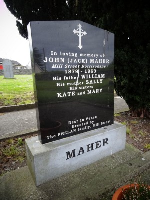 In loving memory of John (Jack) MaherMill Street Borrisokane1879 - 1963His father WilliamHis mother SallyHis sistersKate and MaryRest in PeaceErected ByThe Phelan Family, Mill Street