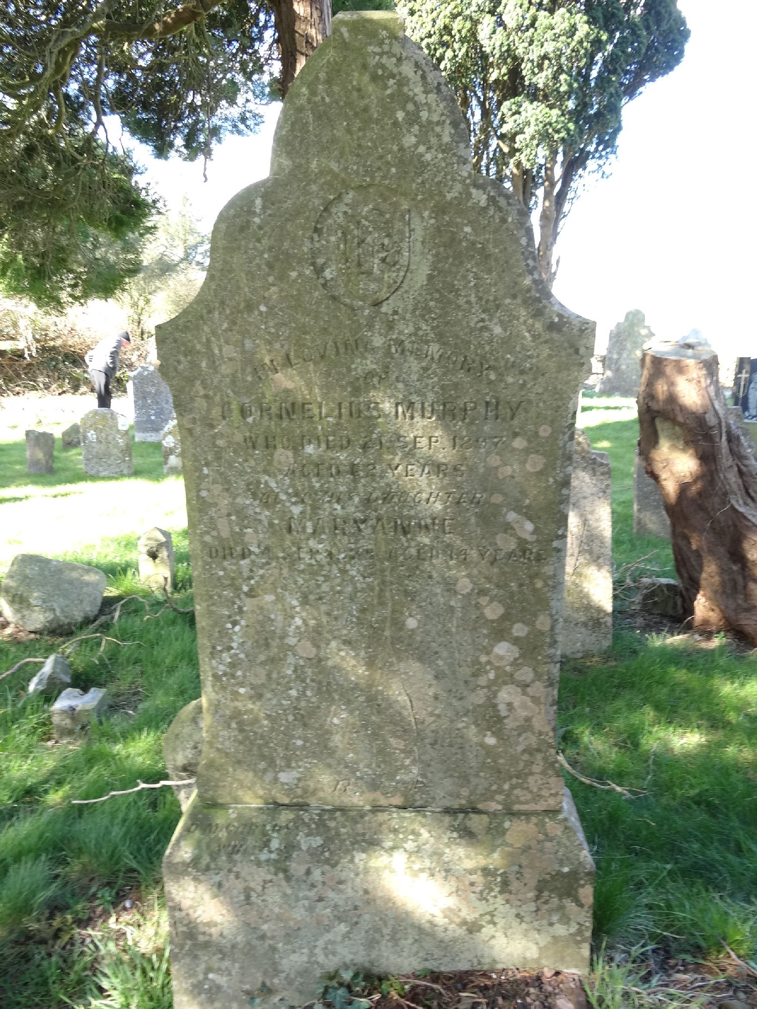 I. H. S. IN LOVING MEMORY OF CORNELIUS MURPHY WHO DIED 21. SEPT. 1897 AGED 62 YEARS ALSO HIS DAUGHTER MARYANNE DIED 4. SEP. 1878 AGED 14 YEARS R. I. P.
