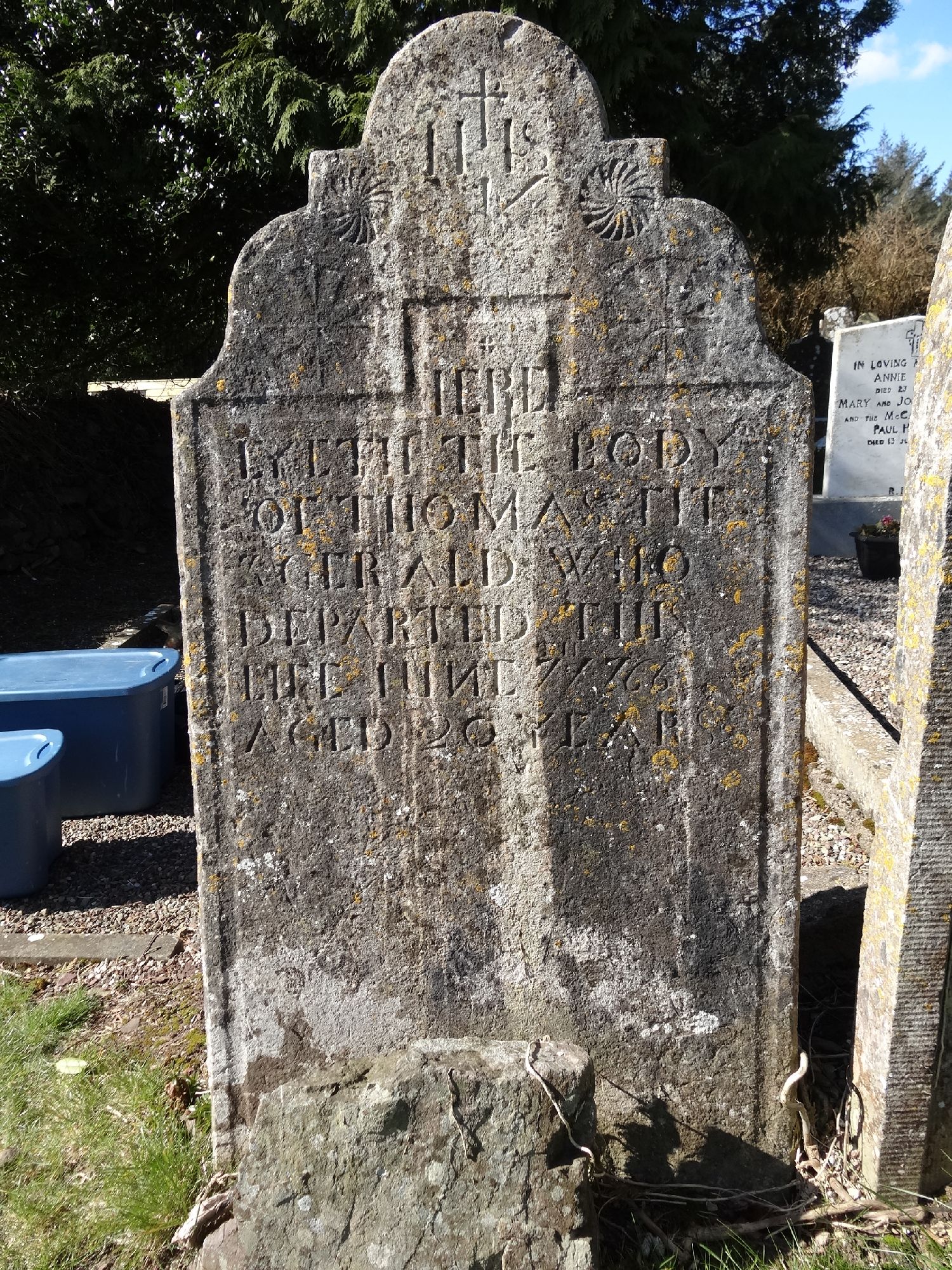 I. H. S. HERE LYETH THE BODY OF THOMAS FITZ GERALD WHO DEPARTED THIS LIFE JUNE 7th 1766 AGED 20YEARS