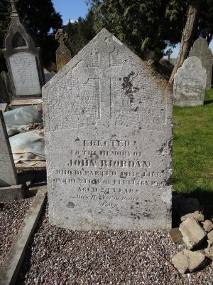 ERECTED TO THE MEMORY OF JOHN RIORDAN WHO DEPARTED THIS LIFE ON THE 21 DAY OF FEBURARY 1860 AGED 23 YEARS MAY HE REST IN PEACE AMEN