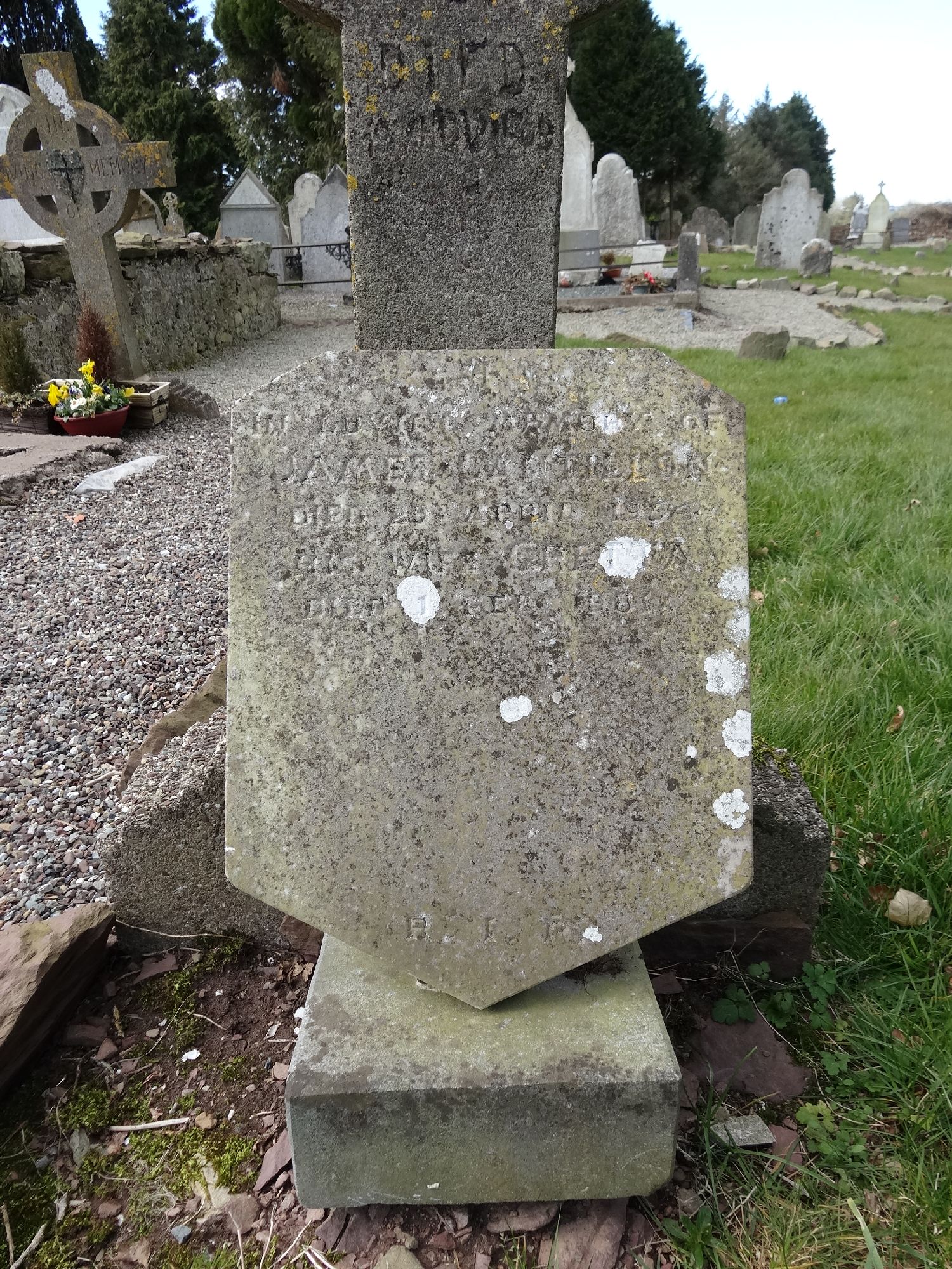 I.H.S. IN LOVING MEMORY OF JAMES CANTILLON DIED 29 APRIL 1954 HIS WIFE GRETTA DIED 1 FEB. 1984 R.I.P.