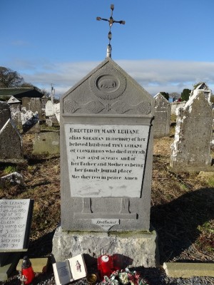 ERECTED BY MARY LEHANEalias SHEAHAN in memory of herbeloved husband TIM'Y LEHANEof CLONRIBBON who died FEB'Y 7th 1870 aged 56 years And ofher Father and Mother as beingher family burial place May they rest in peace Amen
