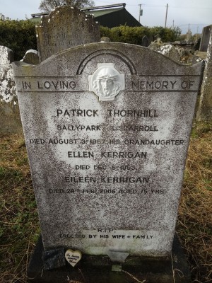 IN LOVING MEMORY OF PATRICK THORNHILL SALLYPARK, LISCARROLL DIED AUGUST 3RD 1957. HIS GRANDAUGHTER ELLEN KERRIGAN DIED DEC 5-1953 EILEEN KERRIGAN DIED 28TH FEB 2006 AGED 75 YRS. R.I.P. ERECTED BY HIS WIFE & FAMILY