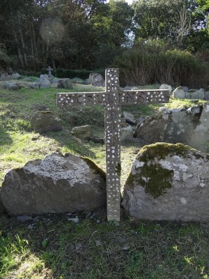 Stone cross inlaid with white stones