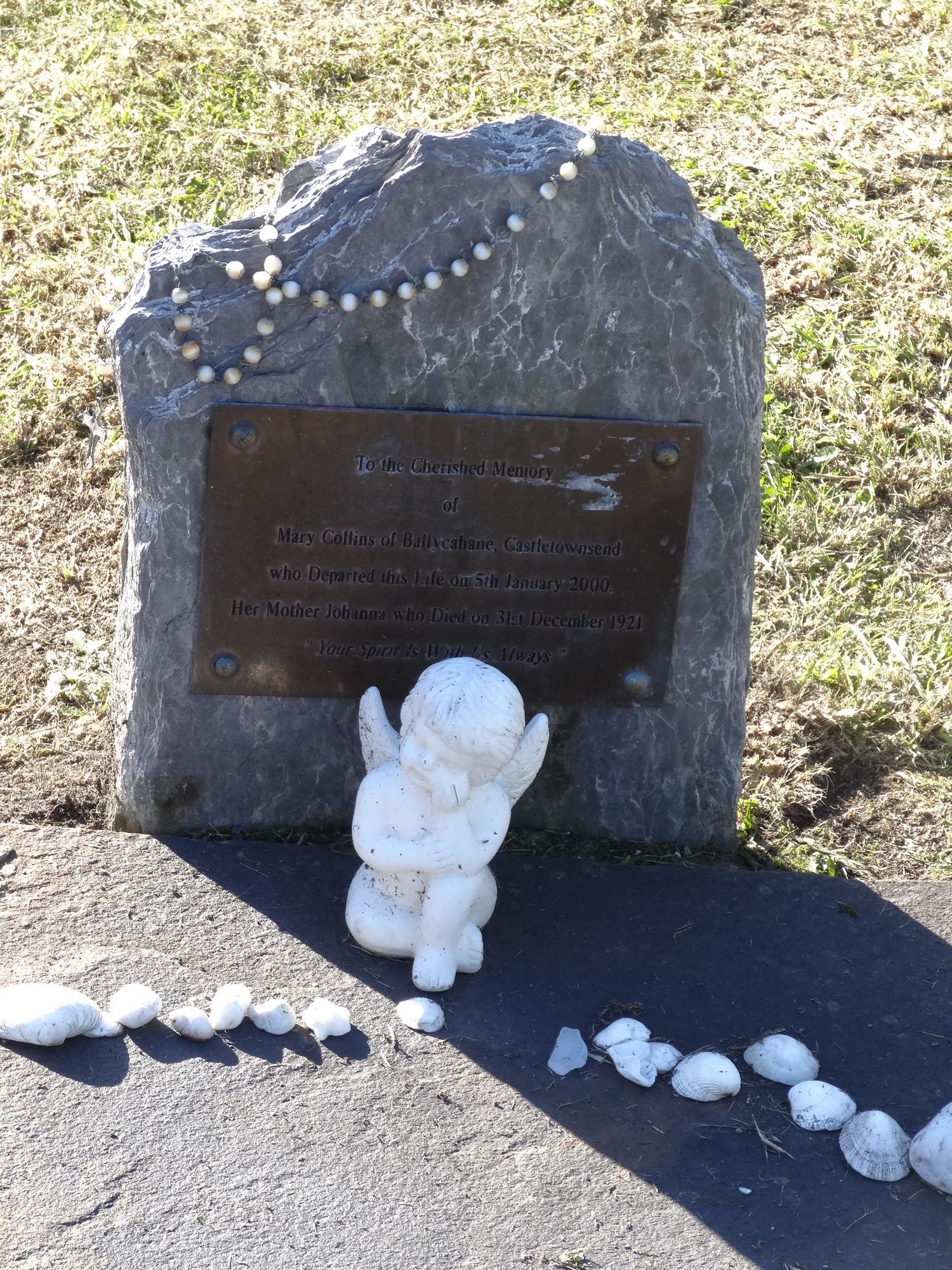 To the Cherished MemoryOfMary Collins of Ballycabane, Castletownsendwho Departed this Life on 5th January 2000.Her Mother Johanna who Died on 31st December 1921"Your Spirit Is With Us Always"