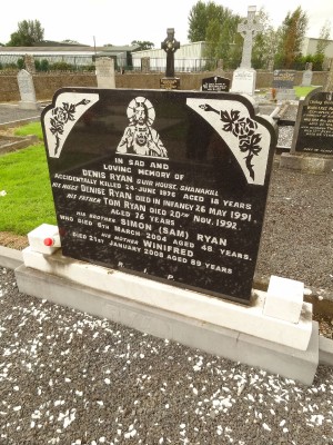 HIS NIECE DENISE RYAN DIED IN INFANCY 26 MAY 1991.