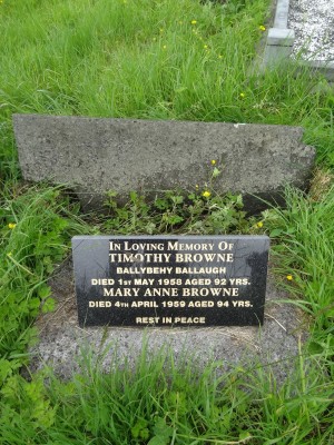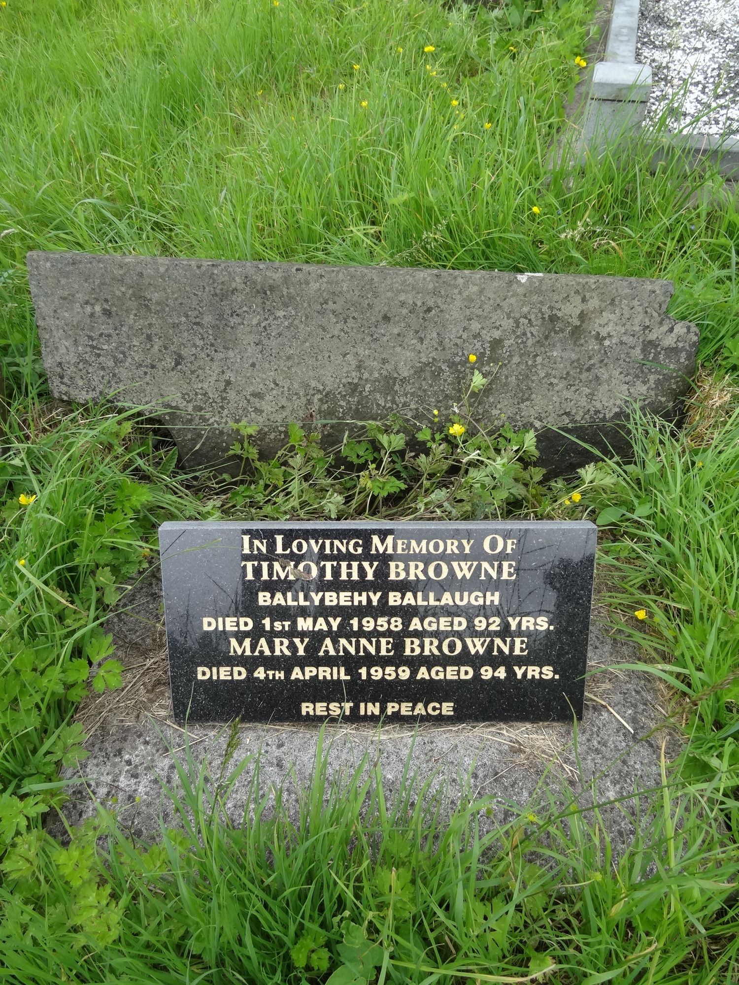 Memorial Number 42 (Timothy Browne) placed on same grave plot, in front of this marker stone memorial.