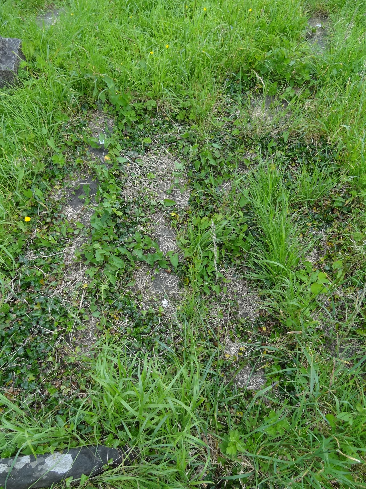No headstone Grave plot covered with flag stones.