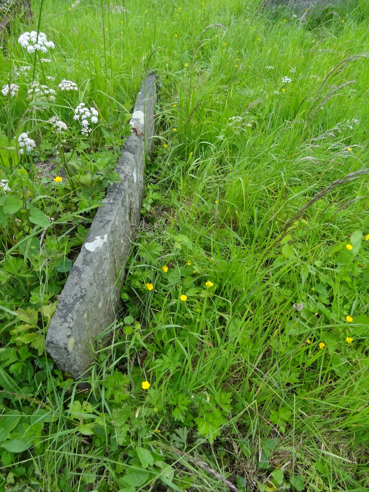 Marker stone by side of the grave plot. No head marker stone visible,
