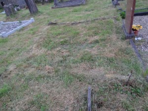 No headstone, plot marked out by old kerbing, grassed over. Double plot.