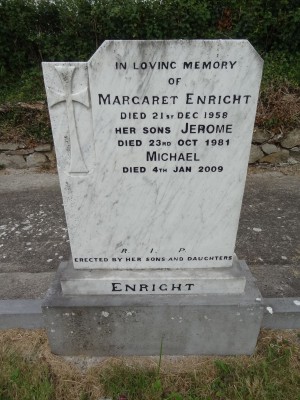 In Loving MemoryOfMARGARET ENRIGHTDied 21ST Dec 1958Her Sons JEROMEDied 23RD Oct 1981MICHAELDied 4TH Jan 2009