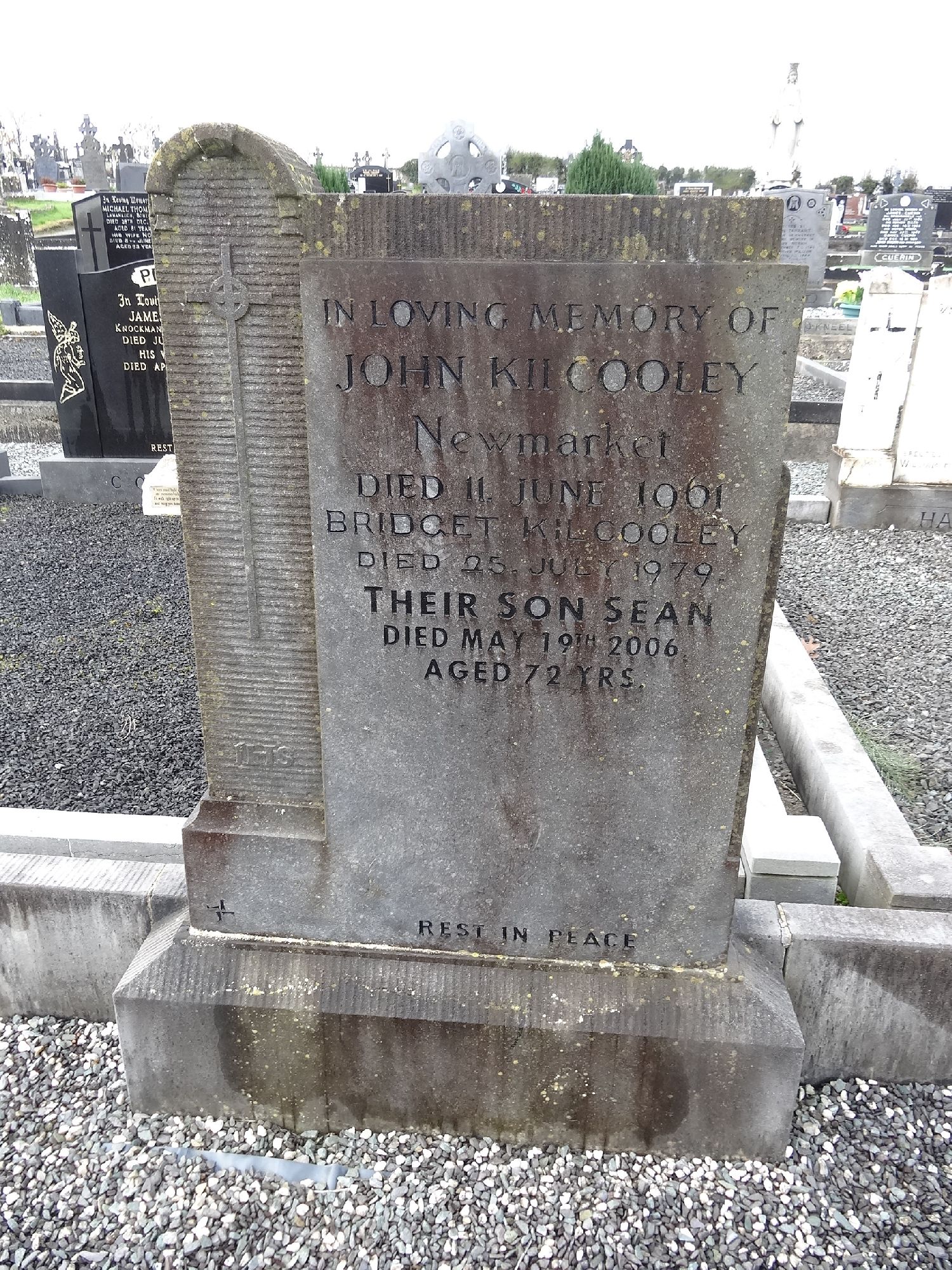 IN LOVING MEMORY OFJOHN KILCOOLEYNEWMARKETDIED 11. JUNE 1961BRIDGET KILCOOLEYDIED 25. JULY 1979.THEIR SON SEANDIED MAY 19TH 2006AGED 72 YRS.