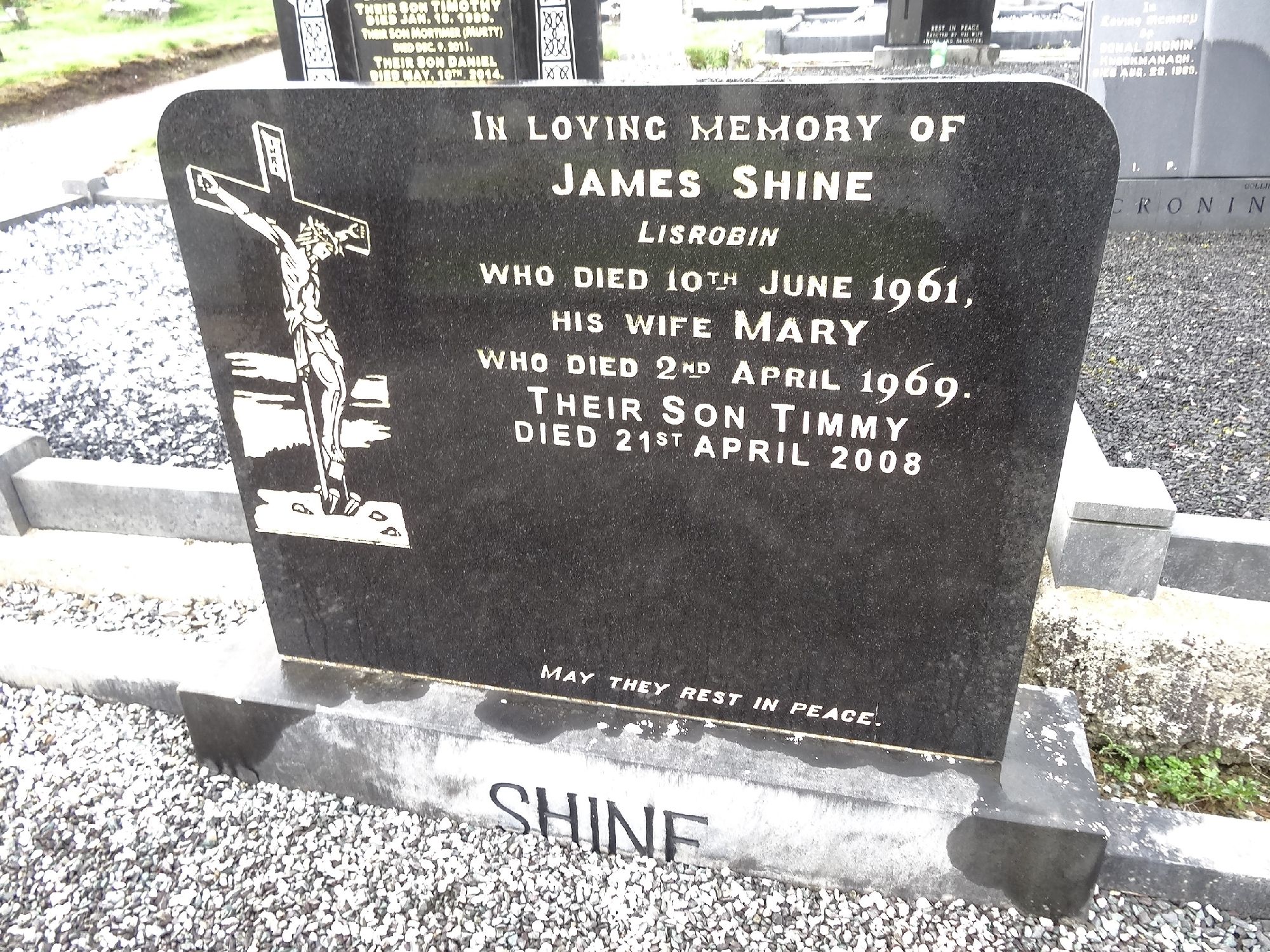 In Loving Memory Of JAMES SHINELISROBINWHO DIED 10 TH JUNE 1961.HIS WIFE MARYWHO DIED 2ND APRIL 1969.THEIR SON TIMMYDIED 21ST APRIL 2008