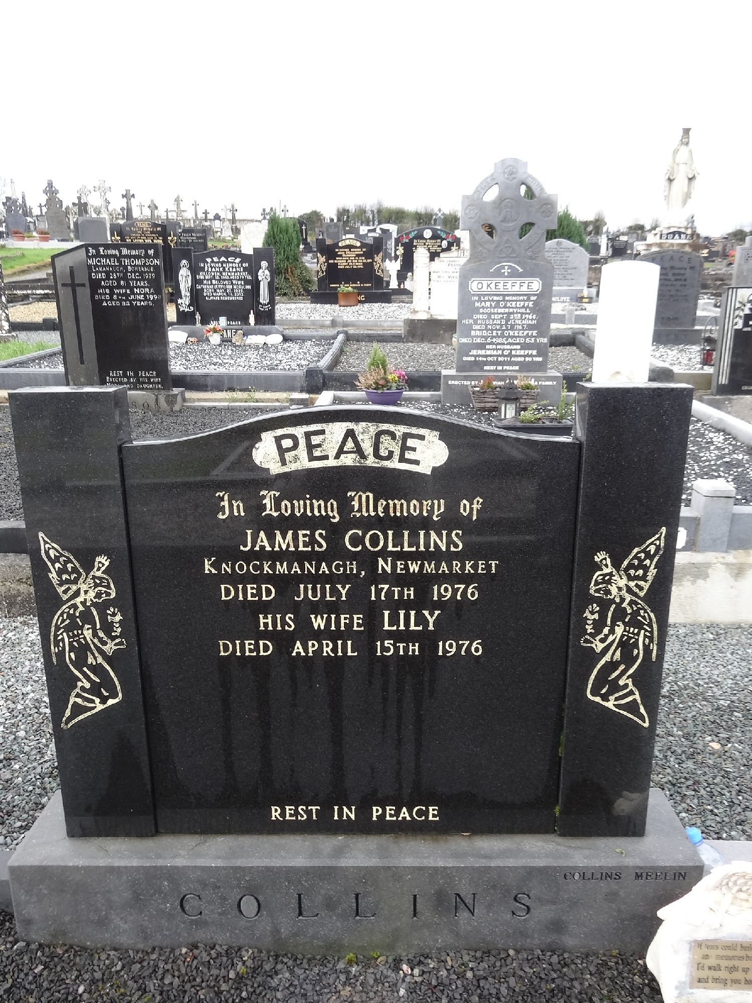 In Loving Memory OfJAMES COLLINSKNOCKMANAGH, NEWMARKETDIED JULY 17 TH 1976HIS WIFE LILYDIED APRIL 15 TH 1976