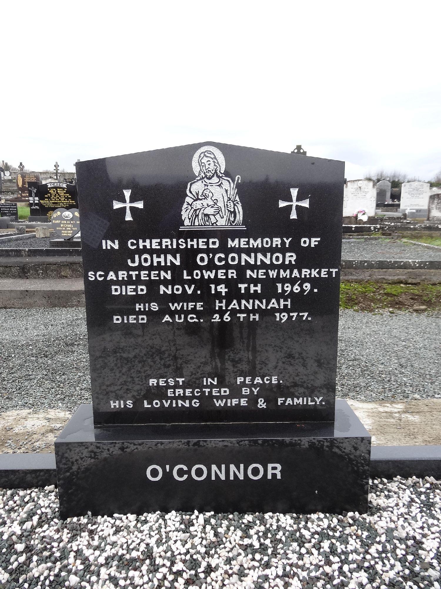 IN CHERISHED MEMORY OFJOHN O'CONNORSCARTEEN LOWER NEWMARKETDIED NOV. 14 TH 1969.HIS WIFE HANNAHDIED AUG. 26TH 1977.