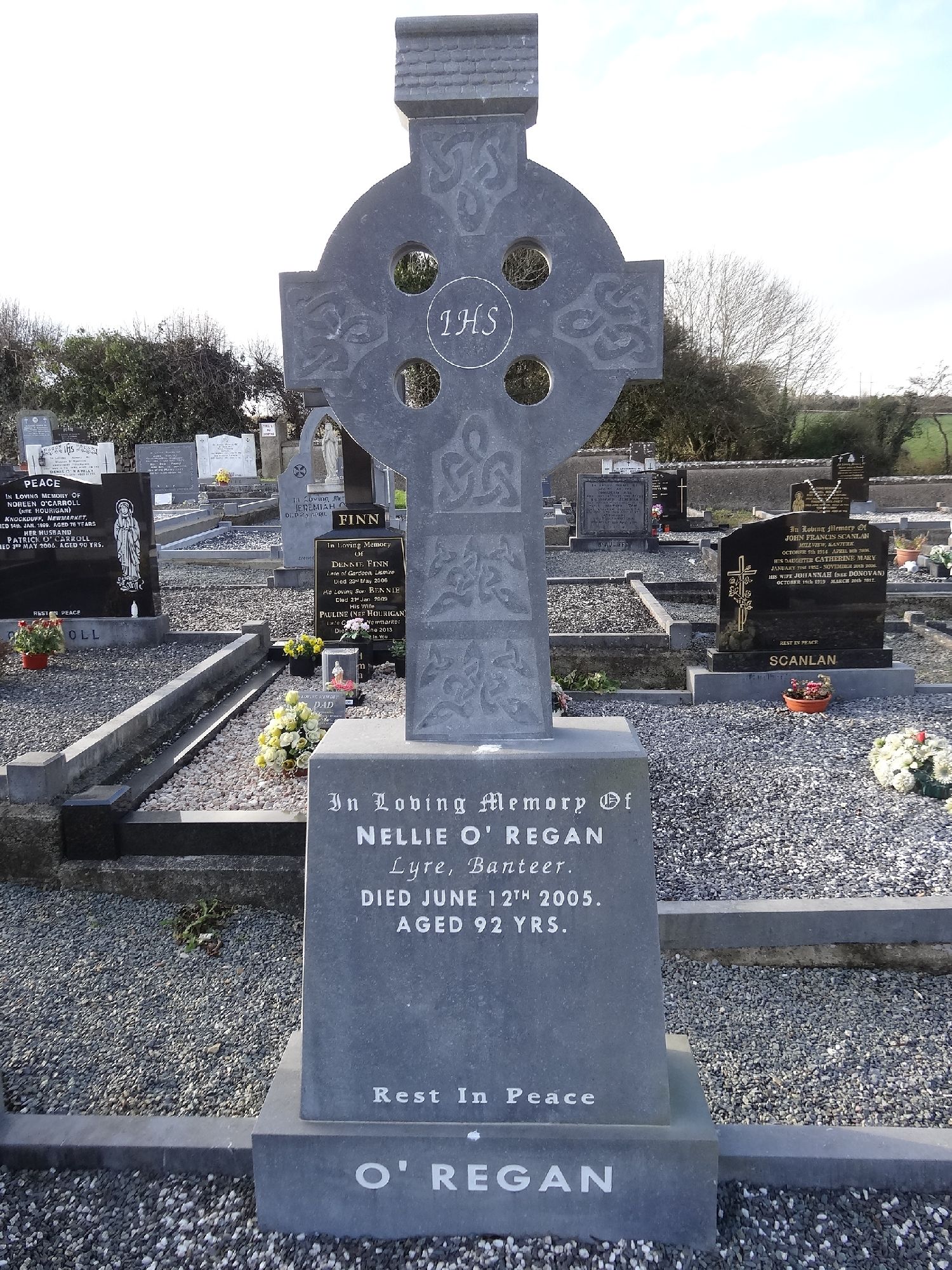 In Loving Memory Of NELLIE O'REGANLyre, Banteer.DIED JUNE 12TH 2005.AGED 92 YRS.