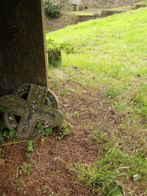 1914 MAP OF THIS GRAVEYARD (AS DISPLAYED IN VESTRY OF ADJOINING CHURCH) LISTS THIS LOCATION AS SECTION 11, GRAVE NUMBER115.THE BROKEN TOP OF A CROSS SEEN IN THIS PICTURE IS PART OF THE MEMORIAL AT SECTION 3, GRAVE NUMBER 55 (NUMBER118 ON THIS SITE).