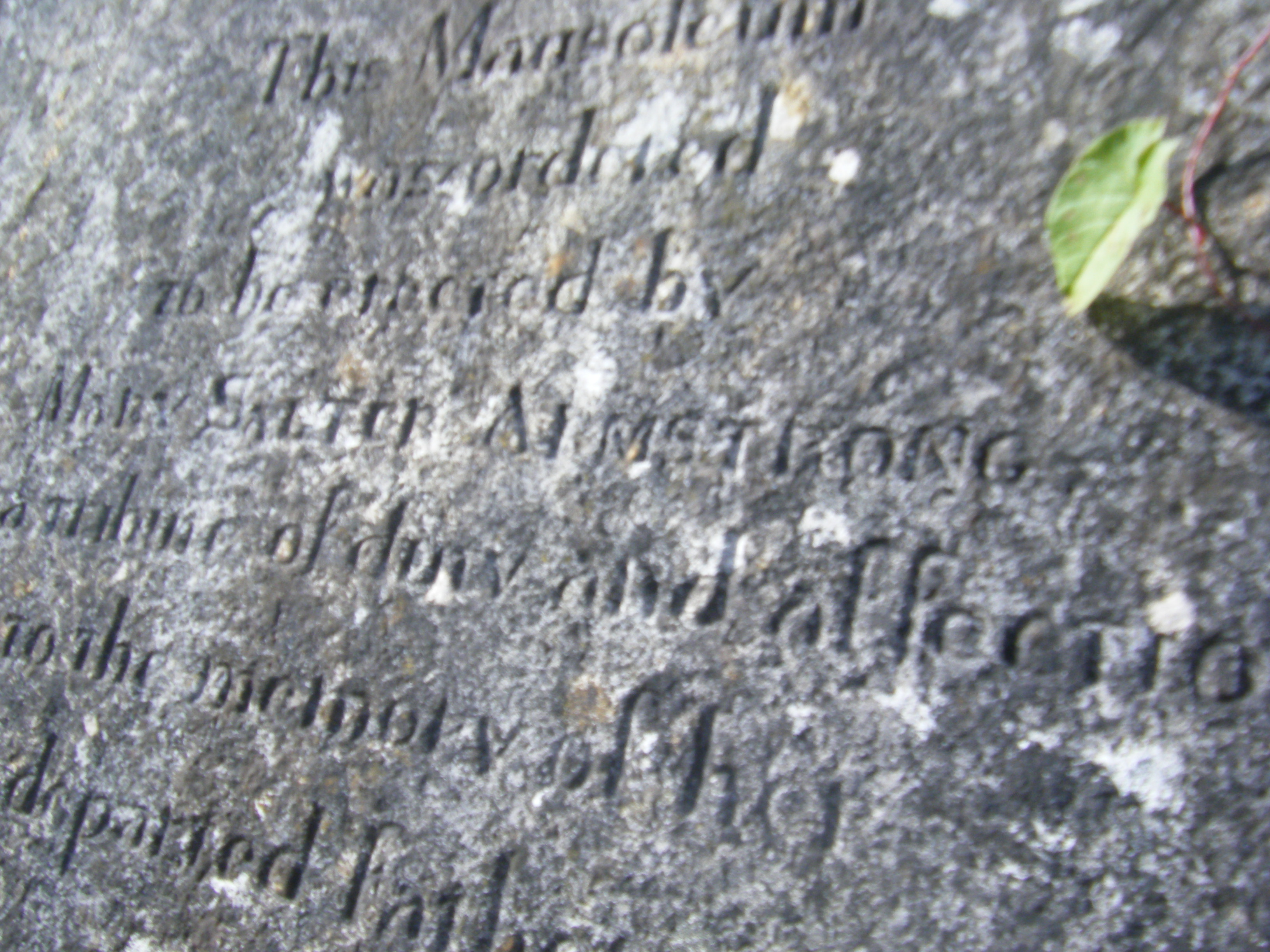 Facing North: This mausoleum was ordered to be erected by Mary Salter Armstrong as a tribute of duty and affection to the memory of her departed father.