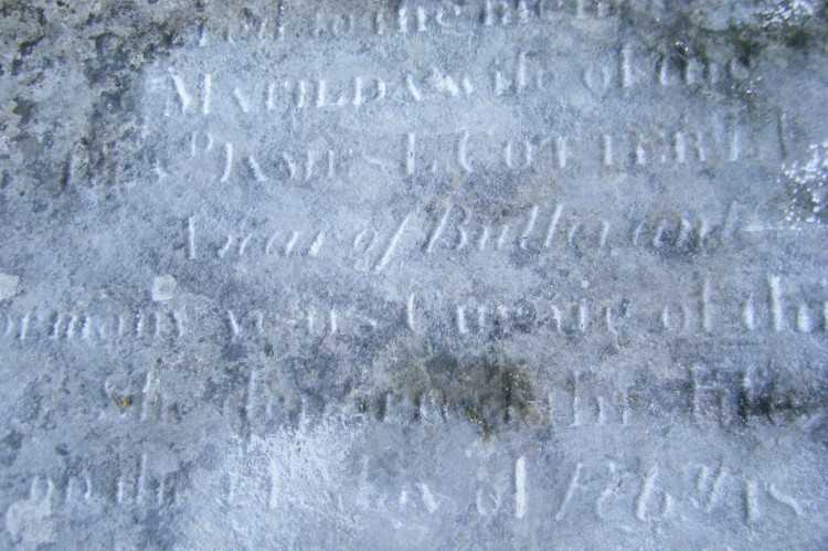1914 map of this graveyard (as displayed in vestry of adjoining church) lists this location as Section 12, grave number 145, the burial place of Matilda Cotter, whose husband James Law Cotter was curate of this parish in 1822.