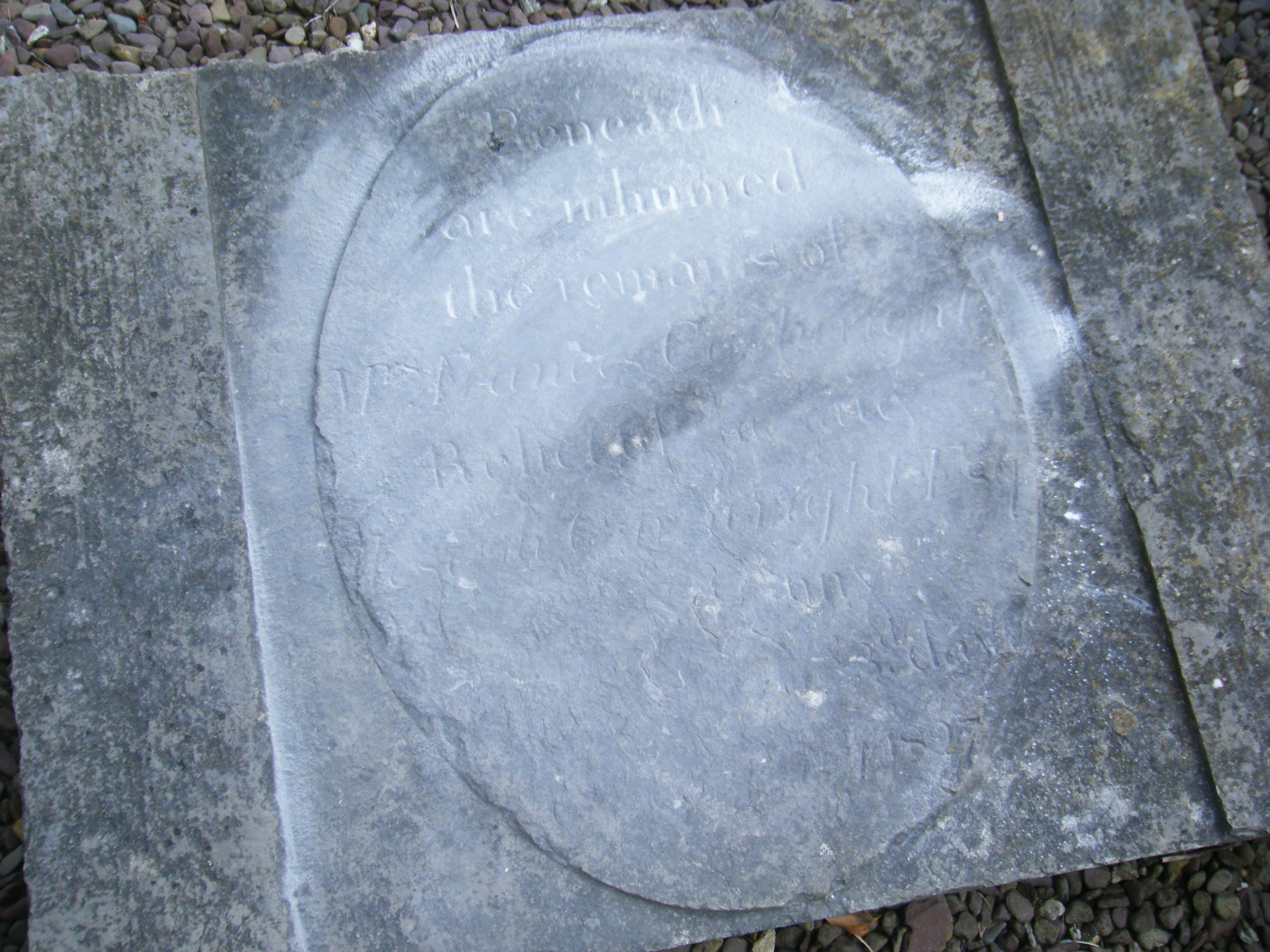 Wall plaque to the same lady can be found on the South wall of the church, which reads "Beneath are inhumed the remains of Mrs Frances CartWright, relict of Joseph Cartwright Esq., who died the 3rd day of February 1827