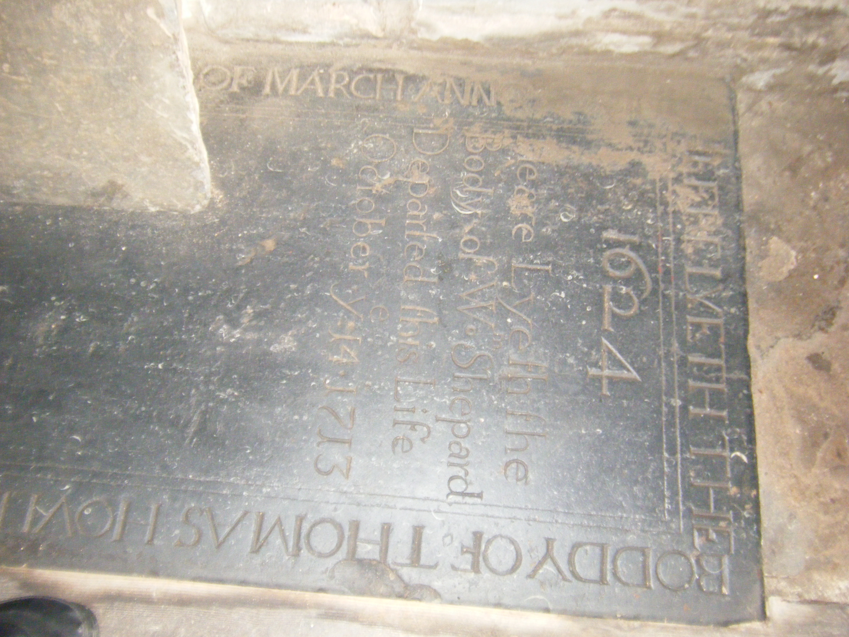 Heere lyeth the boddy of Thomas Houldshipp, sometimes Mayor of Youghall who dyed the three and twentieth of March Anno Domini 1624.