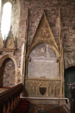 In the memory of Francis Drew Esq. M.D. of Meanus Co. Kerry & Mocollup Castle Co.Waterford, eldest son & heir of John Drew Esqr of Drew’s Court Co. Limerick. His genius, learning, fortune and ancient lineage were graced by humility & great benevolence. He was the familiar friend of the humble & the poor whose sorrows he mitigated & whose wants he generously relieved. He died Sept 3rd 1787 aged 79.