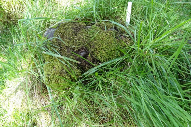 Headstone is upside down, Inscription on underside.