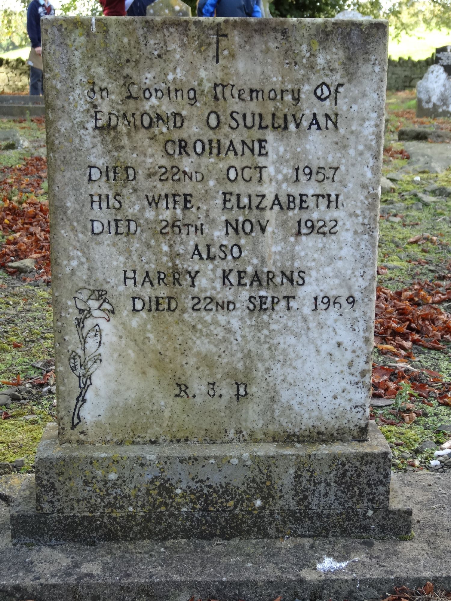 In loving memory of Edmond O' Sullivan Crohane died 22nd Oct 1957 his wife Elizabeth died 26th Nov 1922 Also Harry Kearns died 22nd Sept 1969 RIP