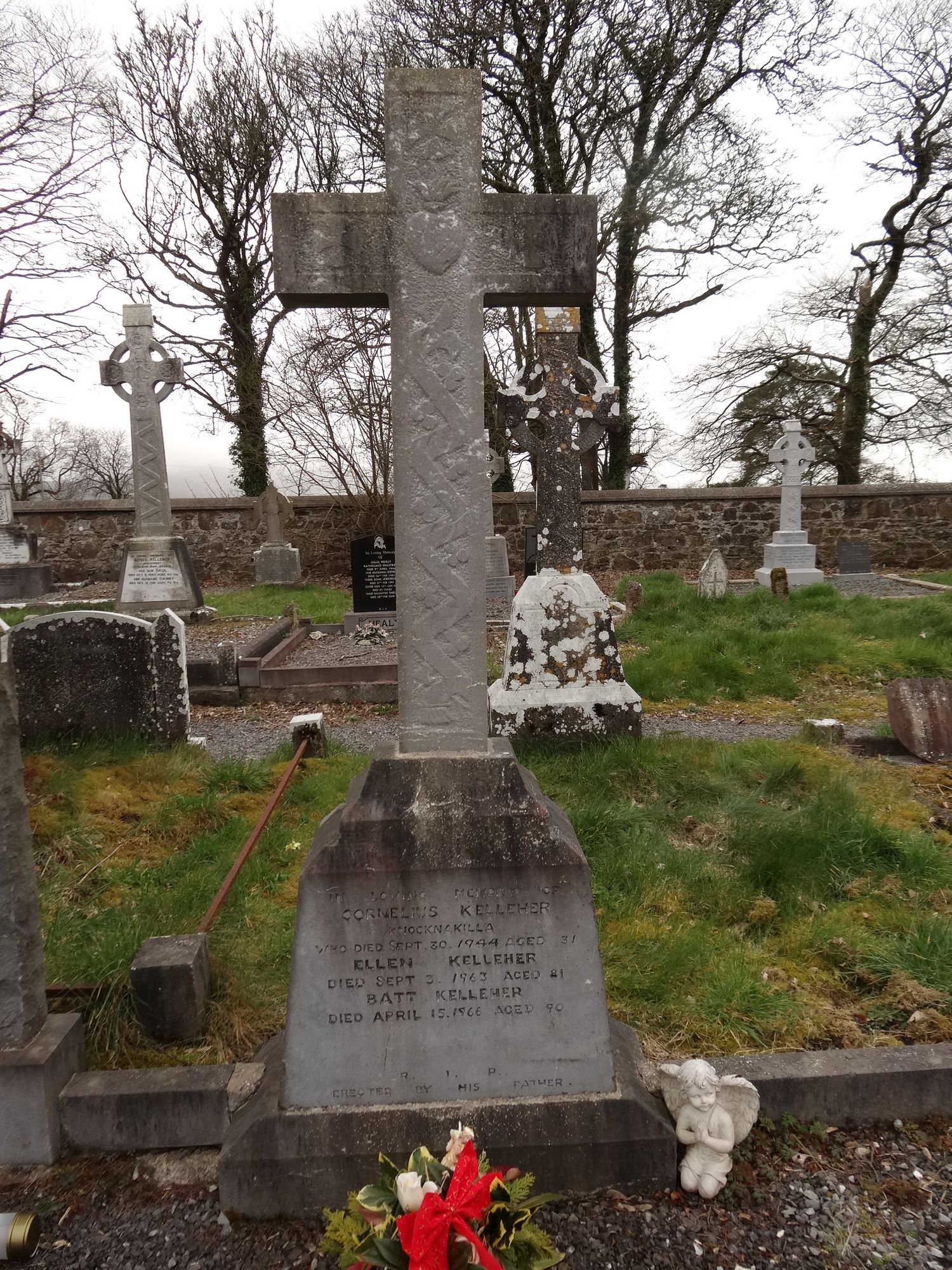 In Loving Memory OfCORNELIUS KELLEHER KnocknakillaWho died Sepr. 30 1944 Aged 31ELLEN KELLEHERDied Sept 3 1963 Aged 81BATT KELLEHERDied April 15. 1966 Aged 90