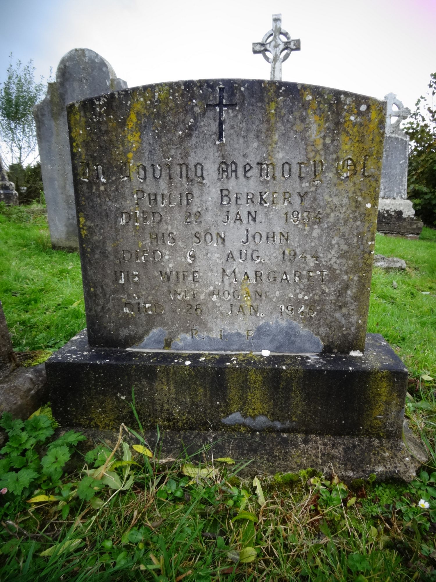 In loving memory of Philip Berkery died 22 Jan 1934 his son John died 6 Aug 1944 his wife Margaret nee Hogan died 26 Jan 1945 RIP
