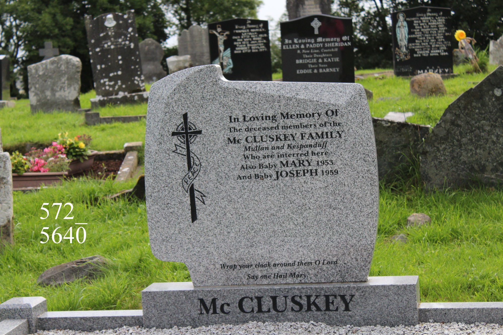 In loving memory ofThe deceased member of theMcCluskey familyMullan and Kespanduffwho are interred hereAlso baby Mary 1953Also baby Joseph 1959