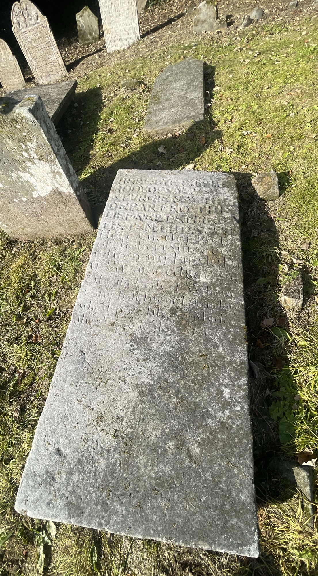 Here lyeth the body of Samuel Sturgien who departed this life September the tenth day 1709. Here lyeth ye body of Robert Sturgien who d..d.ys life July ye 4th 1750 aged 86 years. Also the body of William Campbell late of Derenelooen who departed this life March the 7th 18(?)06 aged 70 years.